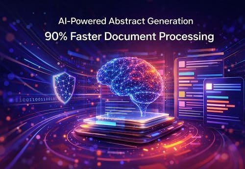 The Problem: Manual abstract creation consumed 30–45 minutes per document with inconsistent quality, no version control, and fragmented access management. Teams processing 100+ documents monthly lost 50–75 hours to manual summarization.